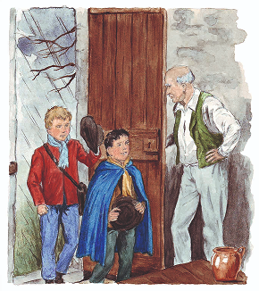 Entrando no jardim, os meninos bateram palmas e gritaram fortemente, mas ninguém apareceu… Já iam dar meia volta, quando a porta se entreabriu e um homem com os cabelos encanecidos e a fisionomia abatida lhes disse, hesitante: