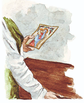 O pobre homem arregalou os olhos e nada disse. Pegou a estampa oferecida pelos meninos e logo grossas lágrimas rolaram por sua face gasta pelos anos.