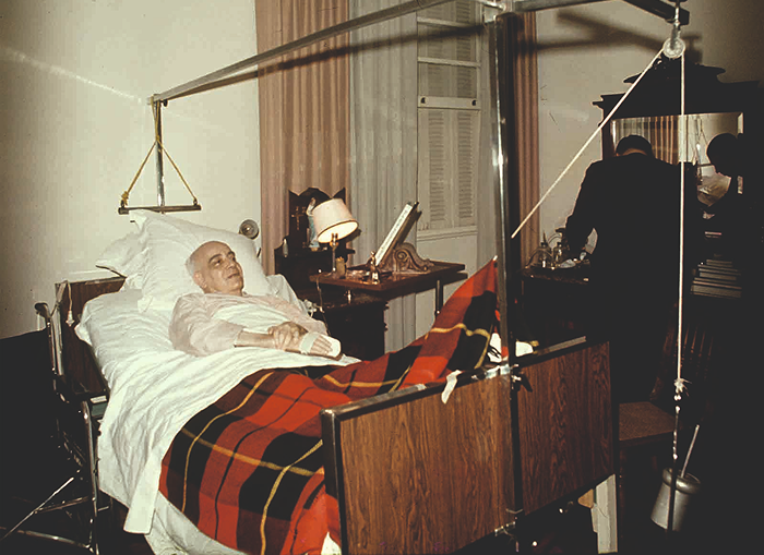 Chegado o momento da partida, ao passá-lo de uma maca para outra os enfermeiros movimentaram-no com pouca delicadeza, e Dr. Plinio gemeu de dor. Foi então que, sempre em estado de trauma, exclamou: