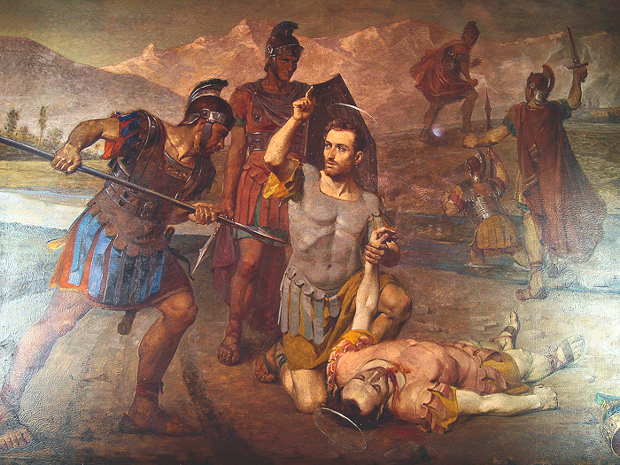 Vendo-os arrasados pelo cansaço e pelos maus tratos, os pagãos que enchiam as arquibancadas procuravam ridicularizá-los, mas eles se mantinham firmes, com olhar sereno.