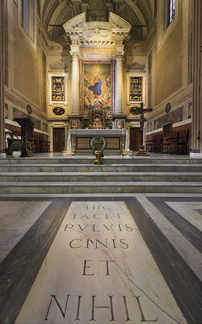 Na nave do templo, defronte ao altar-mor, está sepultado o Cardeal Antonio Barberini, OFM Cap. Em sua lápide, porém, não estão gravadas as inúmeras funções que exerceu na Cúria Romana, nem os títulos nobiliárquicos de sua influente família.