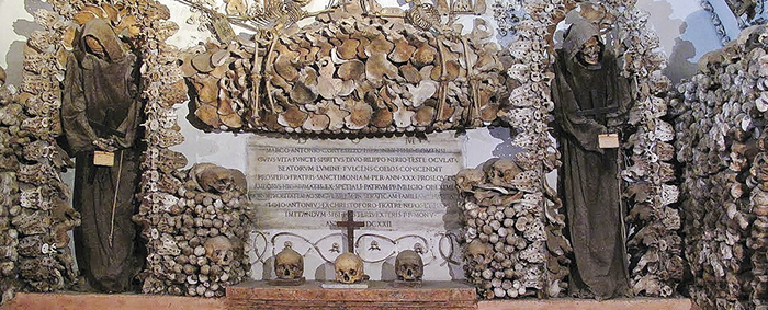 Lá é possível visitar a impactante cripta da Ordem, onde se conservam as ossadas de mais de quatro mil religiosos. O seu comum epitáfio está estampado na famosa frase que dá as “boas-vindas” ao visitante: “Eu fui quem tu és; tu serás o que eu sou” (cf. Eclo 38, 23). Cada um de nós é, de fato, um “cadáver adiado”…[1]