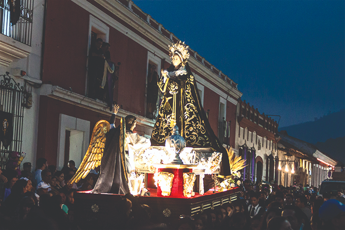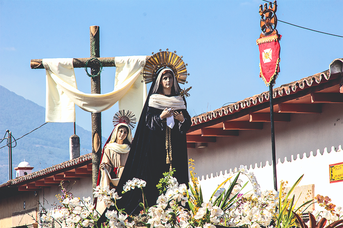 Uma dessas tradições perdura há mais de quatrocentos anos na Antigua Guatemala: trata-se da procissão de Semana Santa, que percorre as ruas ornando o Tríduo Pascal com manifestações de séria e sincera piedade herdada dos colonizadores espanhóis.