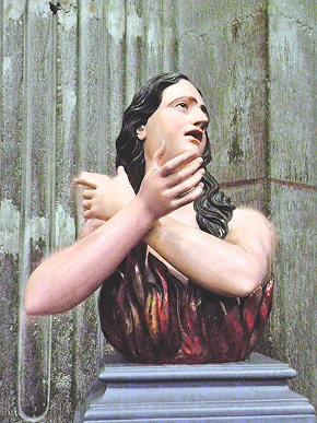 Pois bem, a diferença existente entre a imagem representada no quadro e o fogo real é a que há entre o fogo deste mundo e o do Purgatório.
