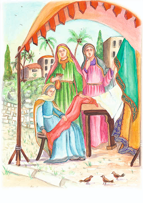 Por volta do ano 33 d.C., uma mulher chamada Sara havia se tornado famosa por seu especial talento: elaborava esplendidamente desde simples véus até tecidos valiosíssimos, decorando-os com fios de ouro, prata ou pedras preciosas.