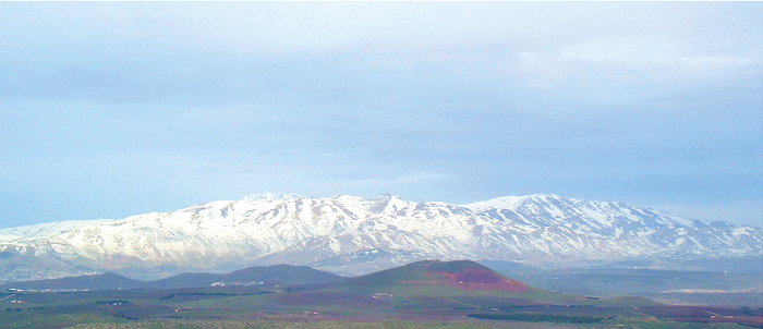 O Hermon, citado diversas vezes nas Escrituras, goza de prestigiosa altura e no inverno costuma revestir-se de um cândido manto de neve. Impõe-se ele, pela sua elevação, como ponto central do panorama, mas sua extensão e delicada orografia conferem-lhe uma nota de nobre suavidade.