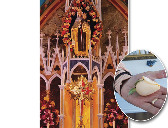 Notou então que uma rosa do arranjo floral que ornava a imagem desprendeu-se e caiu sobre o altar. Pediu a uma irmã que lá estava o favor de dar-lhe aquela rosa. Ela lha entregou dizendo: “A Virgem Maria tem grandes coisas para a senhora”.