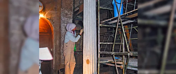 Numa primeira fase, foram reparados o telhado e as paredes internas do templo e recuperados belos afrescos ocultos pelo transcurso dos séculos, os quais podem ser agora apreciados pelos visitantes.