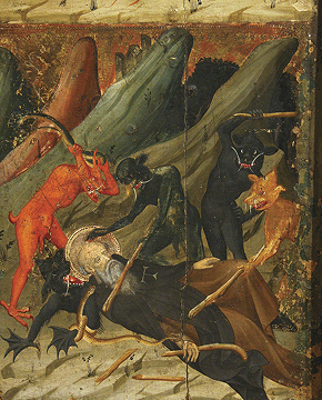 temendo que em pouco tempo o deserto se tornasse uma cidade de ascetas, certa noite entrou no sepulcro com uma multidão de demônios e o golpeou a ponto de deixá-lo estendido por terra.[2]