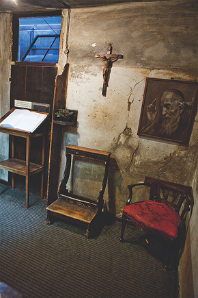 E o lugar que permaneceu intacto durante o bombardeio foi precisamente a cela-confessionário de frei Leopoldo Mandic, onde durante quase quarenta anos, de dez a doze horas por dia, ele ouviu em confissão milhares e milhares de almas arrependidas.