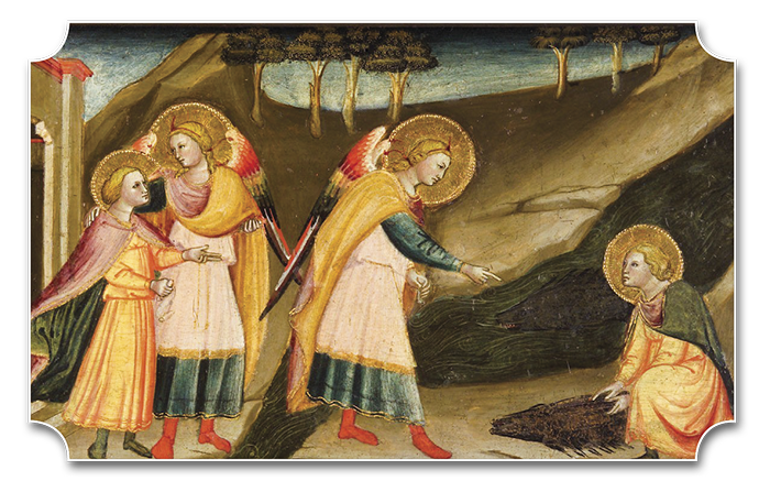 Também a benignidade brilhava em São Rafael. Ele não se contentou em proteger Tobias, mas ocupou-se até mesmo de suas necessidades materiais.
