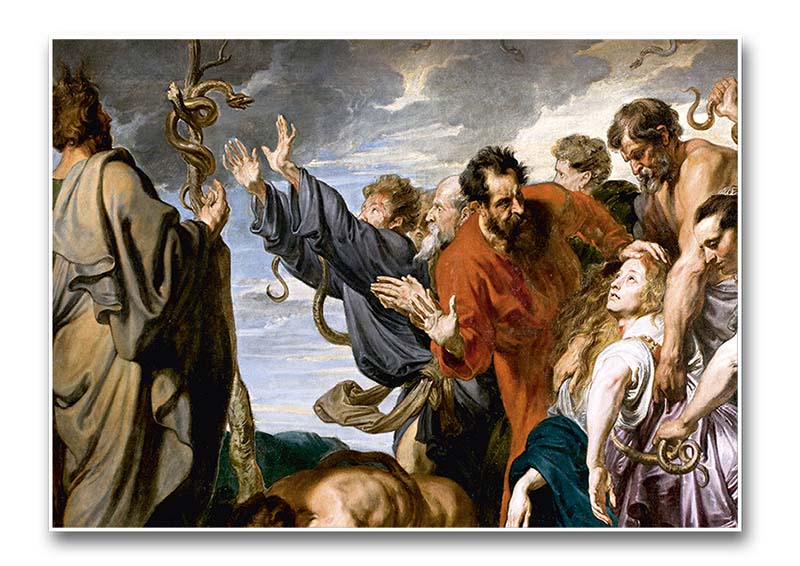 Na corte é pedido a Moisés que realize algum portento, e Aarão joga sua vara, que se transforma em serpente. Os magos do Egito, por ordem do faraó, fazem o mesmo com seus feitiços, mas o cajado de Moisés devora todos os outros. Porém, o coração do chefe da nação egípcia permaneceu endurecido.