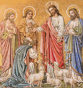 Isso aconteceu numa das aparições aos Apóstolos depois da Ressurreição, junto ao Lago de Tiberíades, quando Jesus perguntou-lhe três vezes: “Simão, filho de João, tu Me amas?” Diante da resposta afirmativa, Jesus ordenou: “apascenta os meus cordeiros”, “apascenta as minhas ovelhas” (Jo 21, 15-17).