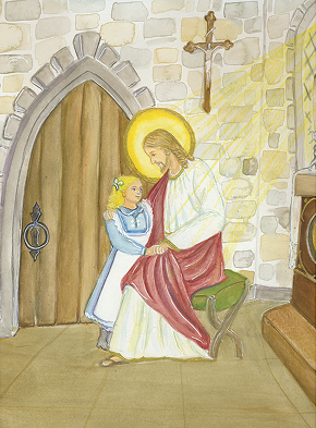 “Jesus no tabernáculo…”, refletiu Manuela “Que feio da minha parte! Estou me preparando para a Primeira Comunhão e nem me veio à mente a ideia de ir visitá-Lo!” De imediato ela se levantou e, enxugando as lágrimas, dirigiu-se à capela das religiosas, à qual os alunos tinham livre acesso.
