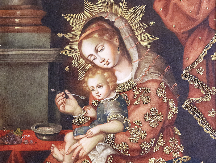 Podemos imaginar também Maria Santíssima prestando atenção para descobrir de que comida gostava mais, ou rezando a Ele para saber qual refeição desejava naquele dia.