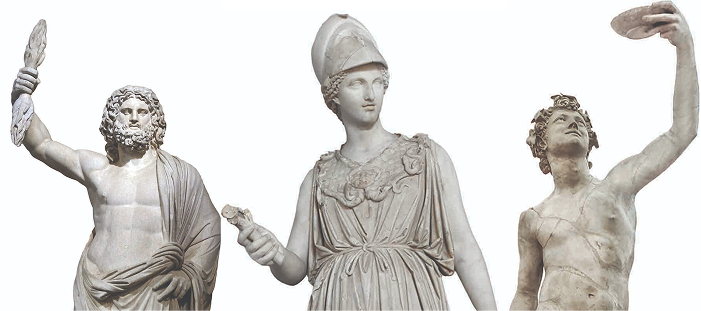 Eles ostentaram nomes diversos outrora – como Atena e Zeus –, mas estão presentes também os que omitiram a mudança de cartório e que compõem, mesmo assim, este comitê intercontinental: a Cibele frígia; a fenícia Astarte; o deus Átis; Baal, o infanticida siro-fenício; uma comissão egípcia presidida por Osíris-Serápis, acompanhado da esposa, Ísis; Mitra, o patrono persa da luz; Adônis de Biblos; Tamuz; Malakbel de Palmira; Dushara, o árabe… e outros tantos numes importados.