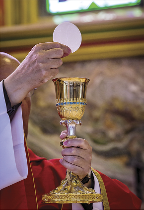 Após a consagração das espécies do pão e do vinho, nelas já não se encontra a substância destes alimentos, mas sim o Corpo, Sangue, Alma e Divindade de Jesus, nosso Senhor.