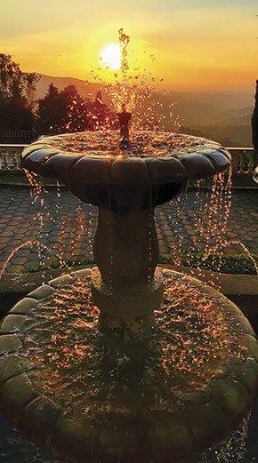 A água de um chafariz que bate no chão e depois respinga para o alto numa porção de gotas é, também, símbolo da gratidão do beneficiário sobre o qual recaem os favores celestes e que lança para cima, de novo para o Céu, a sua filial e jubilosa ação de graças.[5]