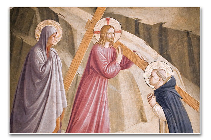 “Nosso Senhor carregando a Cruz, com Nossa Senhora e São Domingos de Gusmão”, por Fra Angélico – Museu de São Marcos, Florença