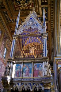 Nesta Basílica encontramos não só vestígios de variados estilos artísticos, graças às obras de embelezamento e ampliação realizadas ao longo dos séculos, mas também numerosas e valiosíssimas relíquias. Dentre as principais contam-se a mesa onde foi celebrada a Santa Ceia (cf. Mt 26, 20-28; Mc 14, 18-24; Lc 22, 14-17), parte do tecido purpúreo com que os soldados revestiram o Divino Redentor na Paixão (cf. Mc 15, 17; Jo 19, 2), as cabeças de São Pedro e de São Paulo, e a taça na qual São João Evangelista, segundo uma antiga tradição, foi obrigado a tomar um veneno que, por milagre, não lhe fez mal.