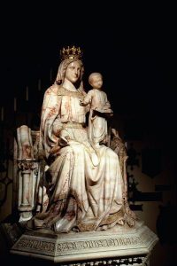 Ninguém poderá pôr em dúvida que grande parte tenha a Mãe de Deus nos serviços prestados pelos veneráveis Padres e Doutores da Igreja, que tão notavelmente trabalharam em defender e ilustrar a doutrina católica. De fato, é a Ela, sede da divina sabedoria, que eles atribuem com gratidão a fecunda inspiração dos seus escritos; foi por obra da Virgem Santíssima, e não pelo mérito deles, conforme eles mesmos atestam, que a malícia dos erros foi debelada. (Leão XIII, Carta Encíclica Adiutricem Populi) “Nossa Senhora Rainha da Sabedoria” Capela do Oscott College, Birmingham (Inglaterra)
